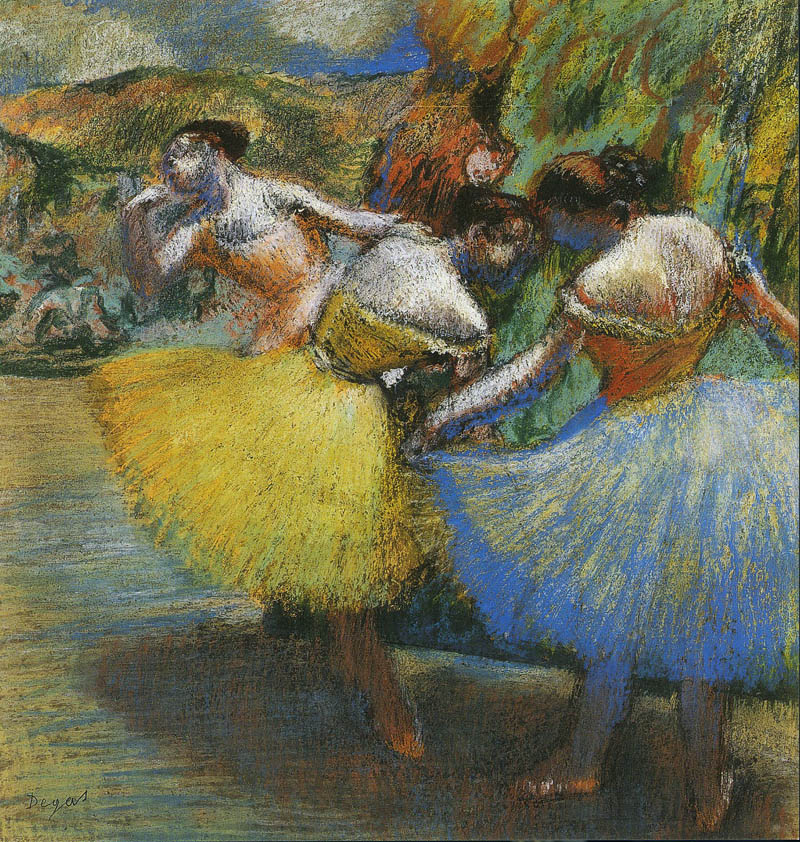 När Mary Cassatt fick syn på en pastell av Edgar Degas ändrade det hennes liv – har hon vittnat om. Hon blev senare vän till Degas och lärde sig att arbeta med pastell på samma sätt. Degas, som gjort pastell Tre dansare (härovan) satte stort värde på Mary Cassatt som konstnär