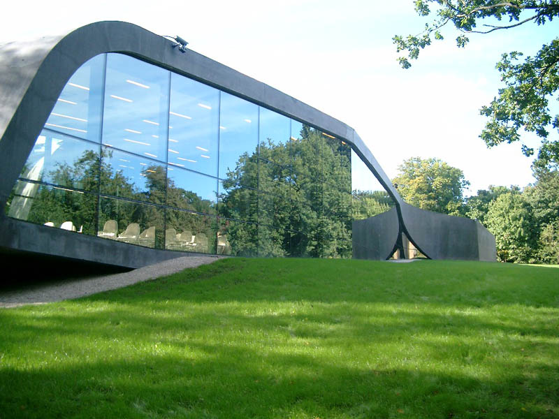 Ordrupgaards konstmuseum är inrymt i flera byggnader, längst till höger visar bilden en del av ena flygeln till den ursprungliga herrgårdsbyggnaden som nu rymmer dansk 18oo-talskonst, i mitten ”galleriet” där de franska impressionisterna håller till och längst till vänster del av arkitekten Zaha Hadids spektakulära byggnad och entrén till hela museumskomplexet.