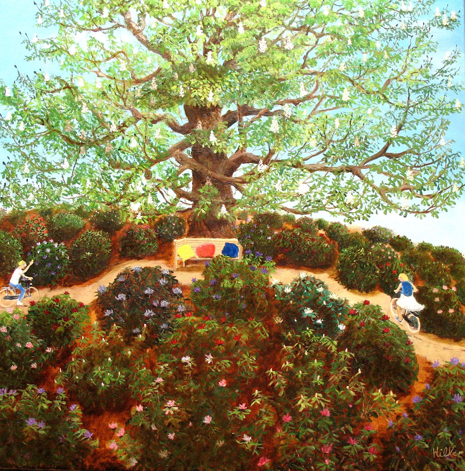 Och när det gäller Gertrud Oxenvads keramik som är fulländad i sitt slag så finns där också ett och annat troll som håller ett fast grepp om livets kärl. I övrigt – och det måste erkännas – är det lycka och skapandets glädje som de båda konstnärerna, holländska Hilda Kernell och danska Gertrud Oxenvad, förmedlar. ”Ett lyckligt hem” med blomsterprakt och musik, ett”Rendez Vous” mellan två förväntansfyllda ungdomar, en ”Otroligt stor skörd” som glädjer bonden, en stor, vackert blommande kastanj som gårdens ”Vårdträd”, ett ”Kantarellfynd” i skogen, en skrivande stund med katten