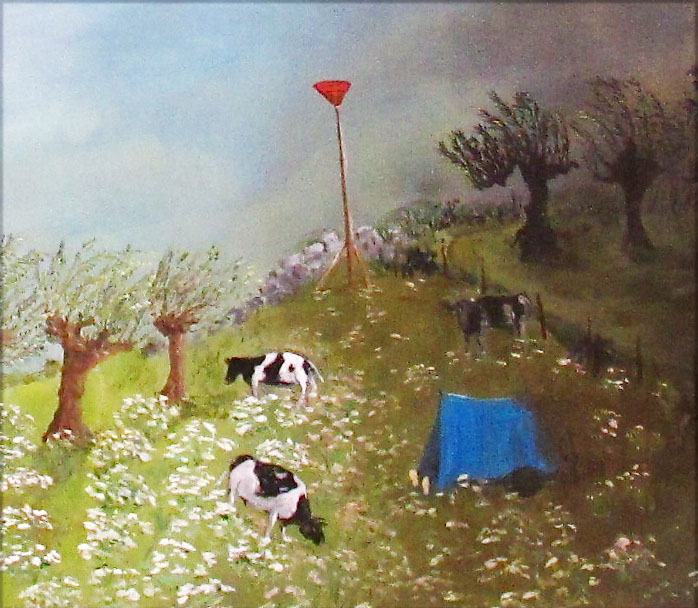 ”Hieronymus i Småland” under en stjärngnistrande mörk augustihimmel i Småland – ja listan av lyckliga ögonblick i målarsjälens skapande ande är lång och skall naturligtvis upplevas framför målningarna. Och stor är också glädjen över att känna den starka och känsliga formsäkerhet med vilken keramikens skål- och kärlväggar drejats, kavlats och knådats och samtidigt glädjas med de små fantasifulla varelser som kantar kärl och fat i Gertrud Oxenvads keramik.