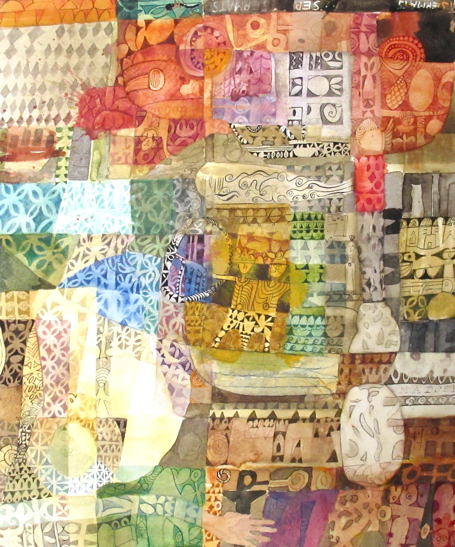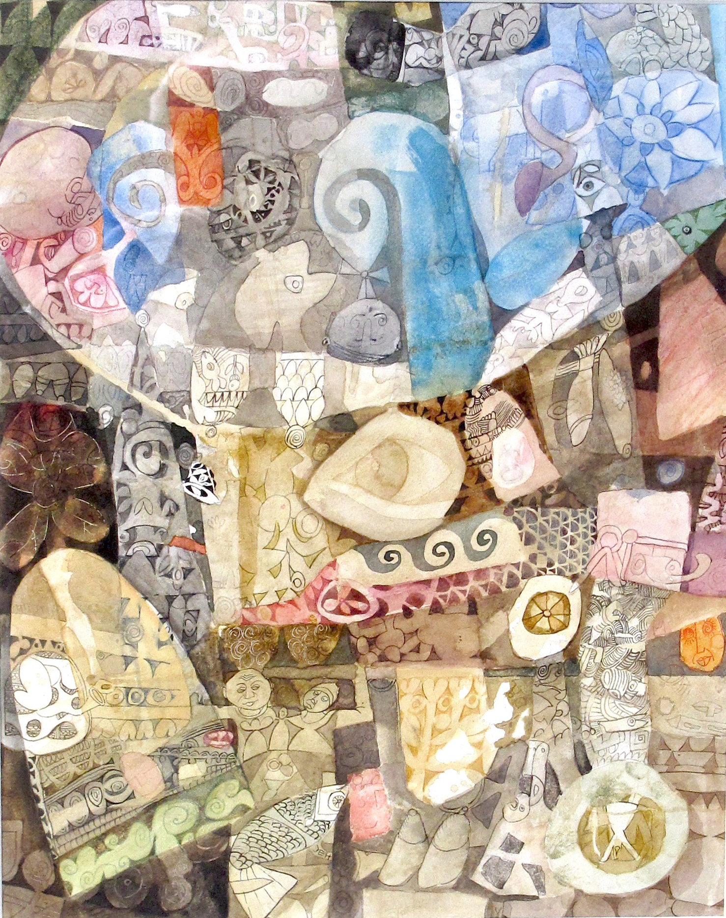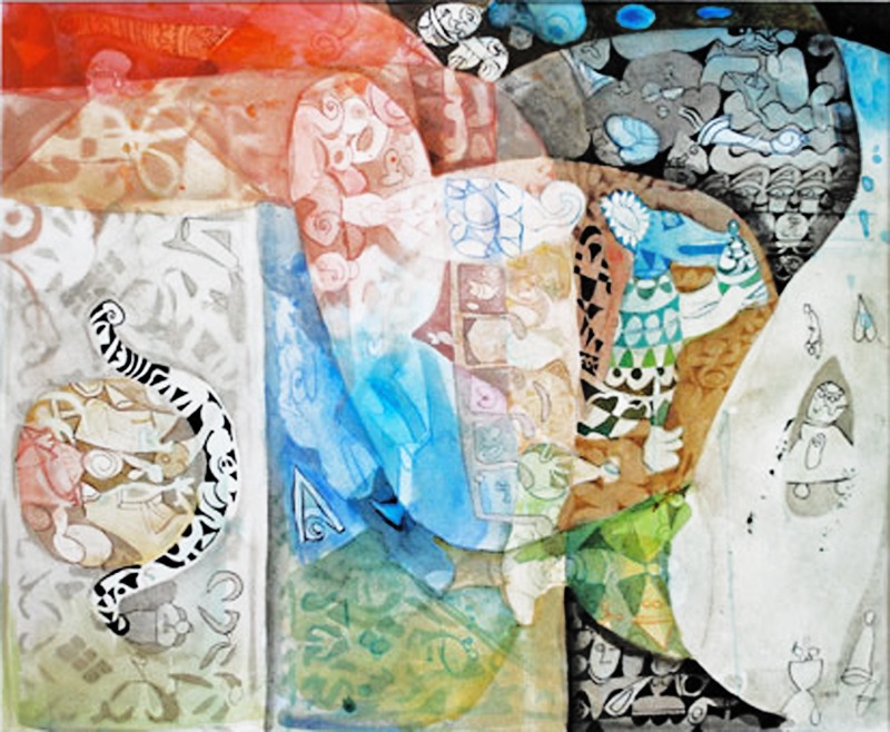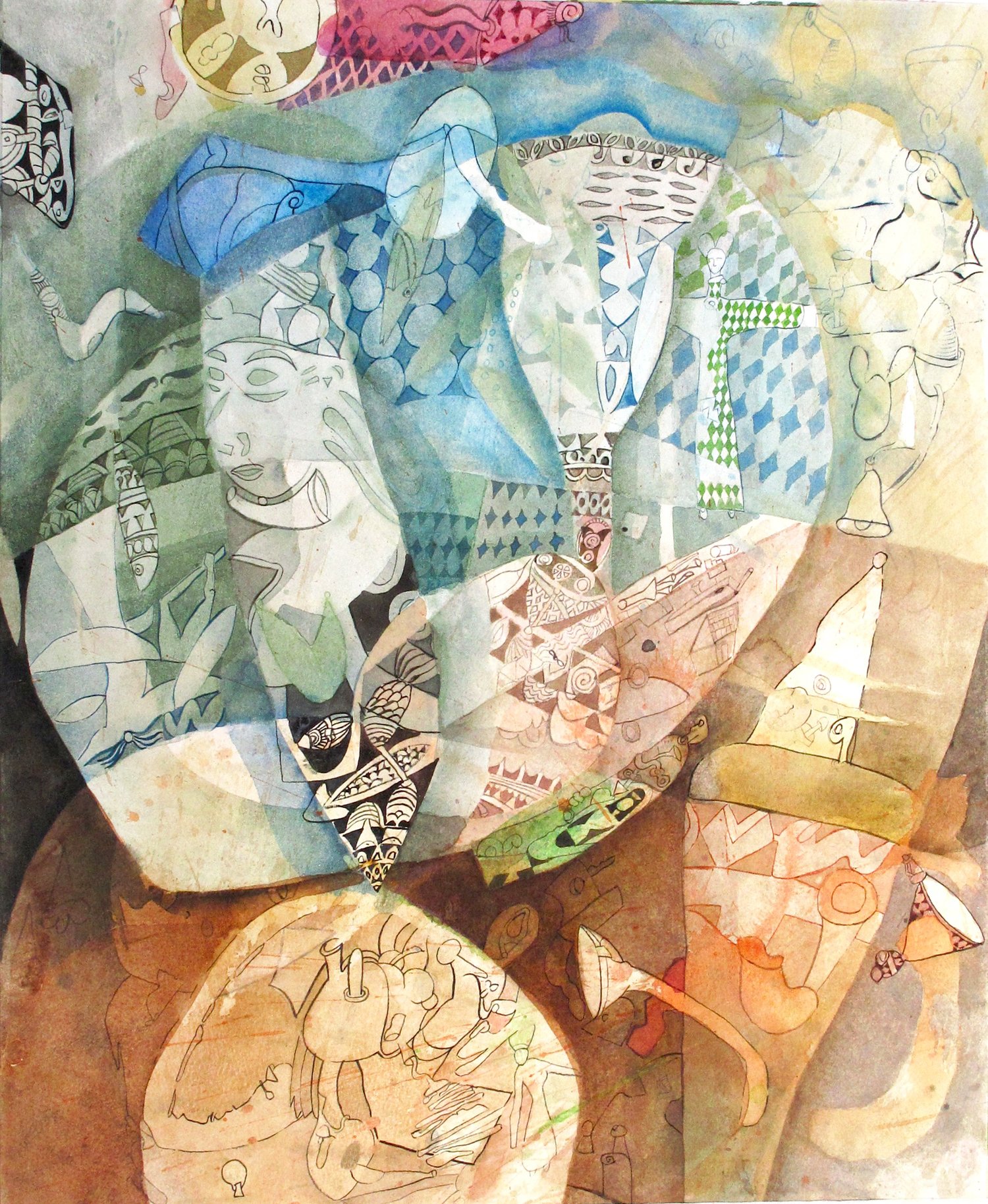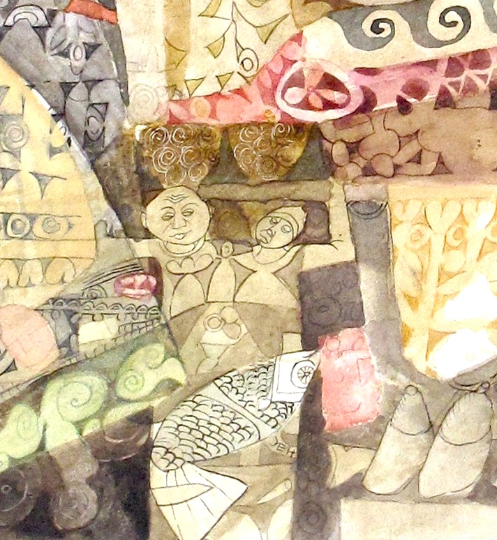 Plats att gå på upptäcktsfäd i ett myller av figurer, former och mönster i akvarellen ”Cirque”