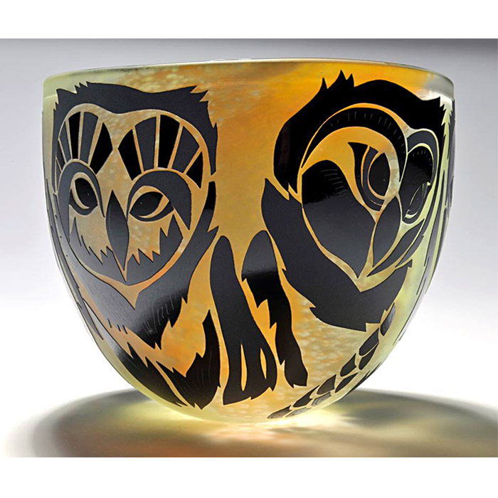 Brotherhood, munblåst glasskål av Betina Huber. Betina Huber ställer ut på Galleri Pictor tillsammans med akvarellisten Johan Ramberg 8/11-7/12 2014