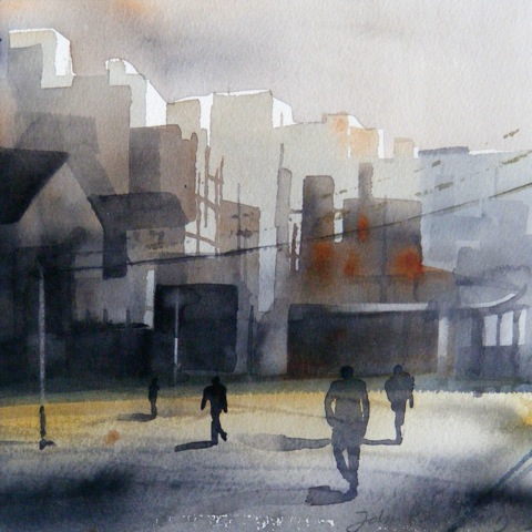”Stad”, akvarell av Johan Ramberg – utställer på Pictor tillsammans med glaskonstnären Betina Huber 8/11-7/12