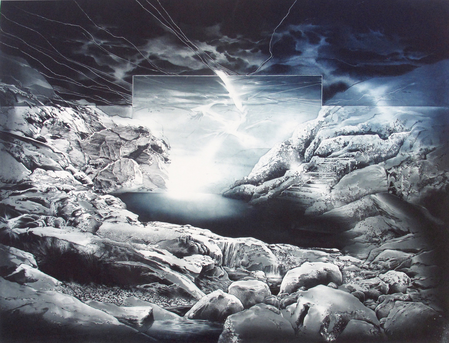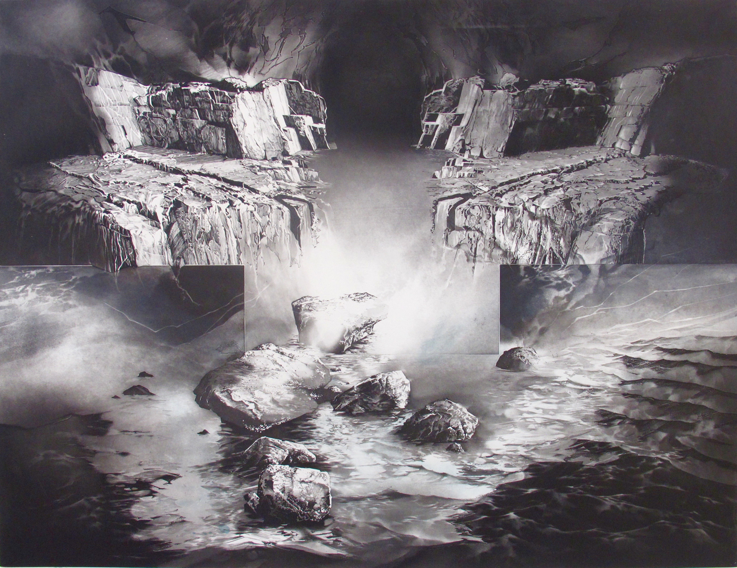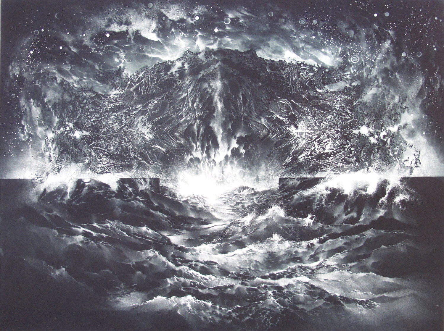 Resultatet blir stora, mäktiga grafiska bilder och målningar med en oemotståndlig visuell kraft och gåtfullhet. Det är mörka bilder, skrämmande och ödesmättade – himlar störtar in, tsunami av svart vatten rusar mot en imaginär strand och tunga granitklippor öppnar sig till en avgrund för jord, vatten, luft och eld. Jordens undergång och en apokalyps utan ryttare.