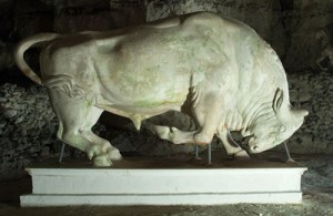 Cimbrertyren” i gipsmodell av Anders Bundgaard. Det bronsgjutna exemplaret står centralt på Vesterbro i Aalborg