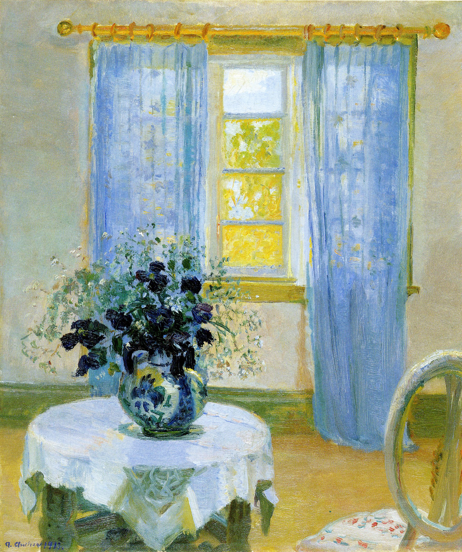 Målningen ”Interiør med klematis” målade Anna Ancher (1859-1935) 1913 då detta rum blev Annas egen ateljé med kompletterande ljus från ett takfönster