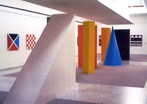 Poul Gernes (1925-1996) är en av den abstrakta konstens främsta företrädare i Danmark. Detta rum med målningar och skulpturer av Poul Gernes stod klart vid invigningen av Nordjyllands konstmuseum. Dagsljuset reflekteras i tak- och väggpartiet ovanför skulpturerna