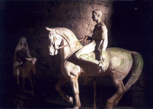 I Tingbæks kalkgruvor finns bl a denna rytterstaty av  Carl Johan Bonnesen utställd permanent. I år (2018) visas dessutom en större utställning med verk av Bonnesen.