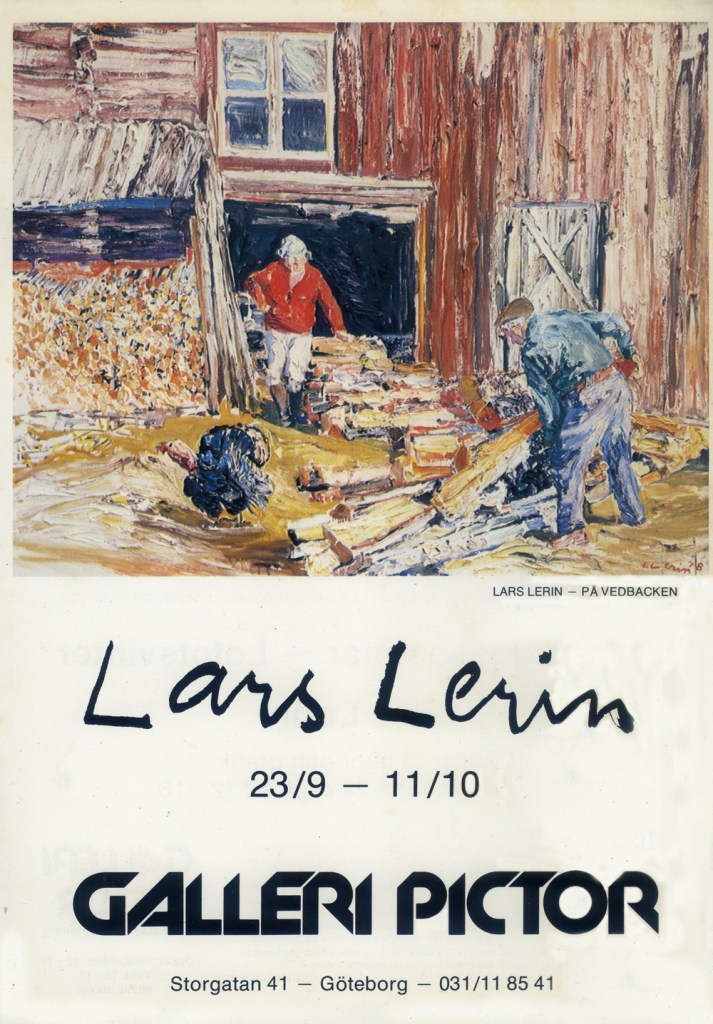 Jag tog kontakt och det bestämdes att vi skulle ses hemma hos Lerins utanför Sunnemo. När jag gick ner i backen mot huset och sjön såg jag att Lars hade hängt upp en halv utställning av målningar på björkstammarna till höger om det större boningshuset. Bakom målningarna skymtade ett mindre härbräliknande uthus som skulle visa sig vara Lars ateljé. Målningarna hängde på tork och jag uppfattade det som ett extra vänligt mottagande. För övrigt enklare än att bläddra bland målningarna i ateljén. Det var oljemålningar, allesammans. Och det var många målningar att titta på och prata om.