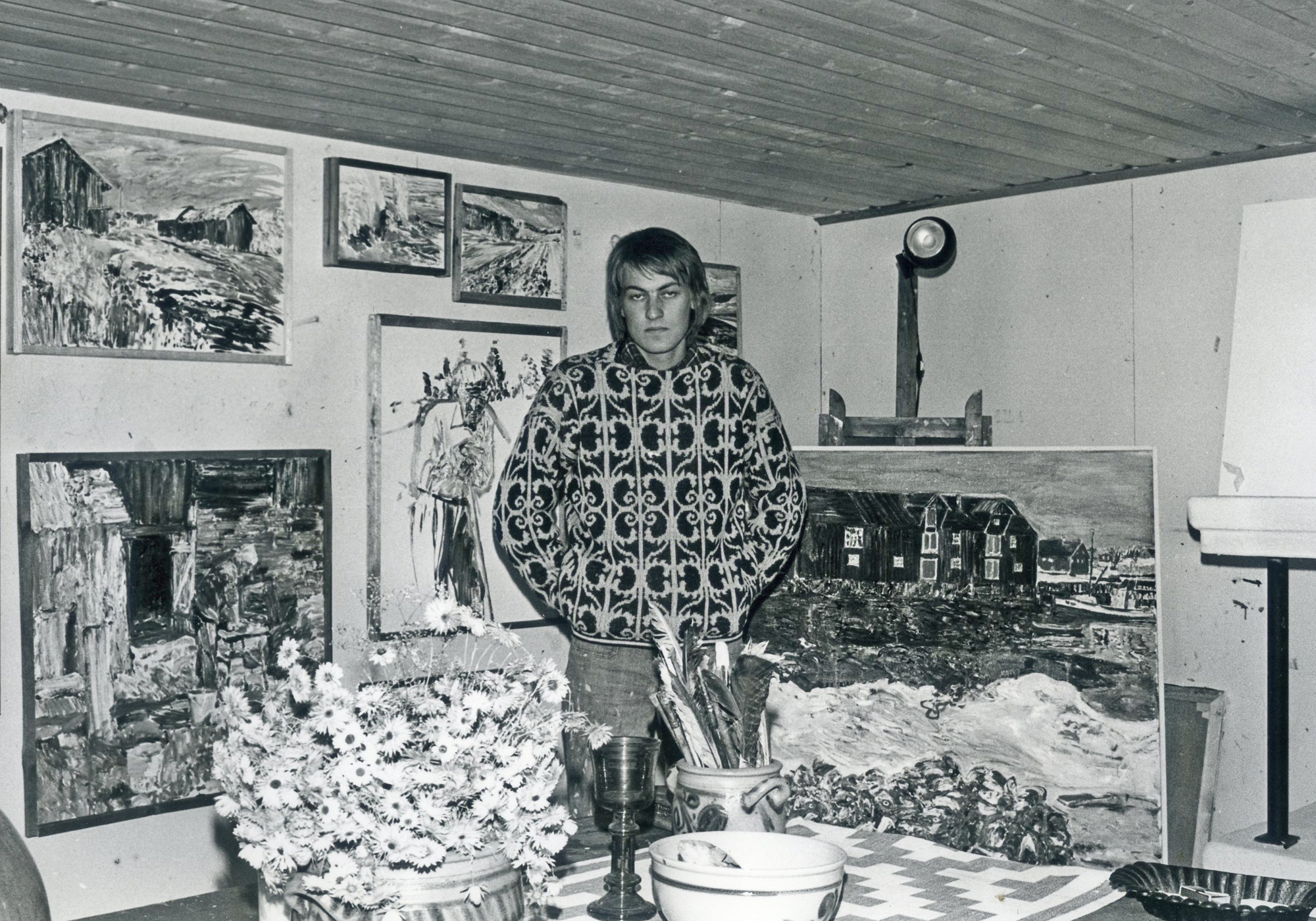 På bilden ovan ses ”Håkan i havreåkern” en av oljemålningarna på utställningen 1978