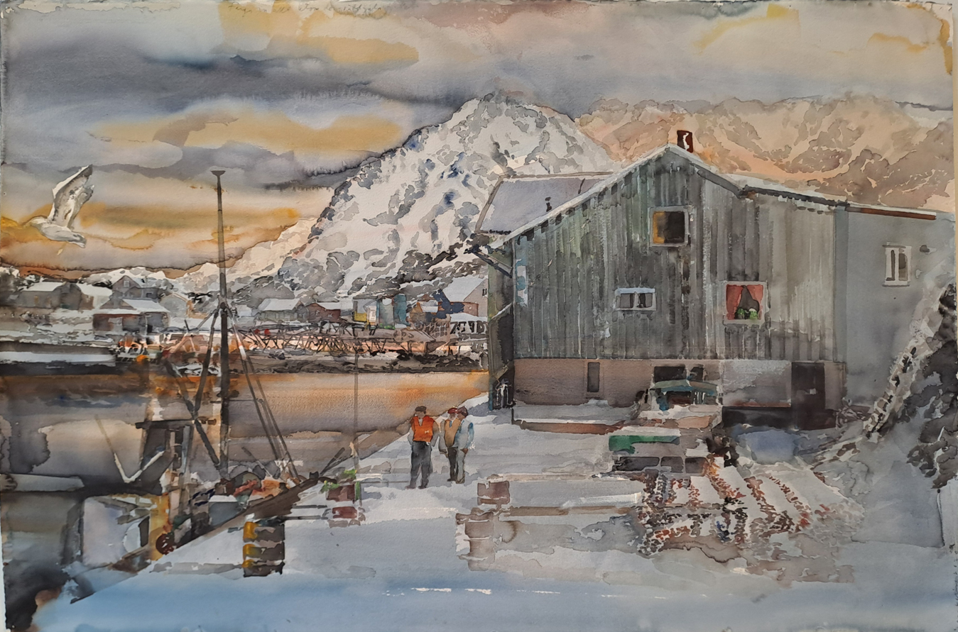 Som konstnär har han i första hand blivit mest känd för sina bilder från de norska fiskarsamhällena vid Vestfjorden på Lofoten, fiskebåtarna där med tackel, master och tåg, arbetet i fiskfabrikerna så att man riktig hör det ekande ljudet av slammer med bleckkärlen, röster och rop och den fräsande vattenstrålen för rensning och spolning av plåtbänkar och golv. Och ödsligheten i de stora tomma lokalerna när arbetet ligger nere.