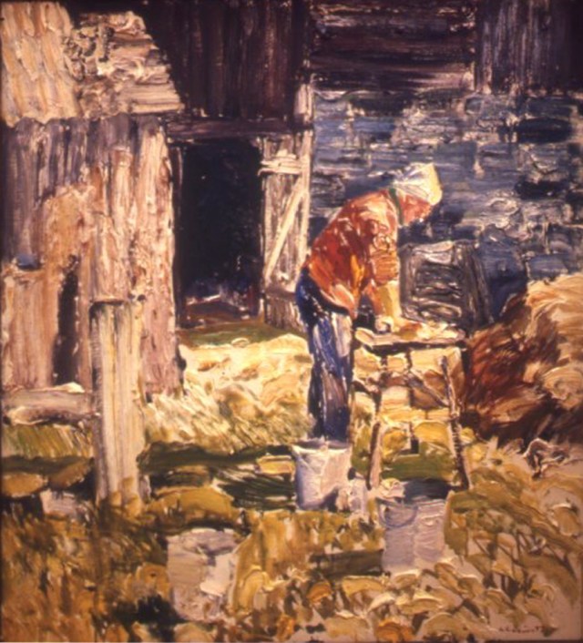 När Lars Lerin och jag träffades några år senare, efter gymnasieårens övningar inför den önskade framtiden som konstnär var paletten fortfarande och huvudsakligen ljus med varma, fylliga färger på duken och där arbetet på gården skildrades med glädje och lust.