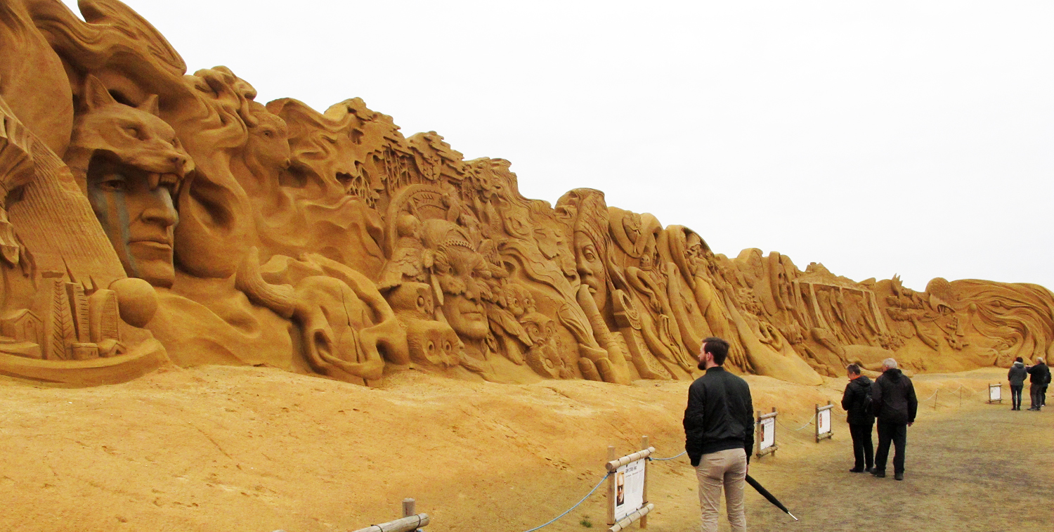 Om konstmuseerna i Herning kan du läsa här. Men vi fortsätter en bit till västerut, passerar Ringkøbing och tar oss fram till stranden vid Søndervig för att titta på ”Sandskulpturfestivalen”. Det är en festival som pågår under hela sommarhalvåret från början av maj till slutet av oktober. Arbetet med skulpturerna pågår också under hela den tiden. Det är en stor konstupplevelse att både få se konstnärerna i direkt arbete med sandskulpturerna och därefter betrakta det imponerande resultatet.