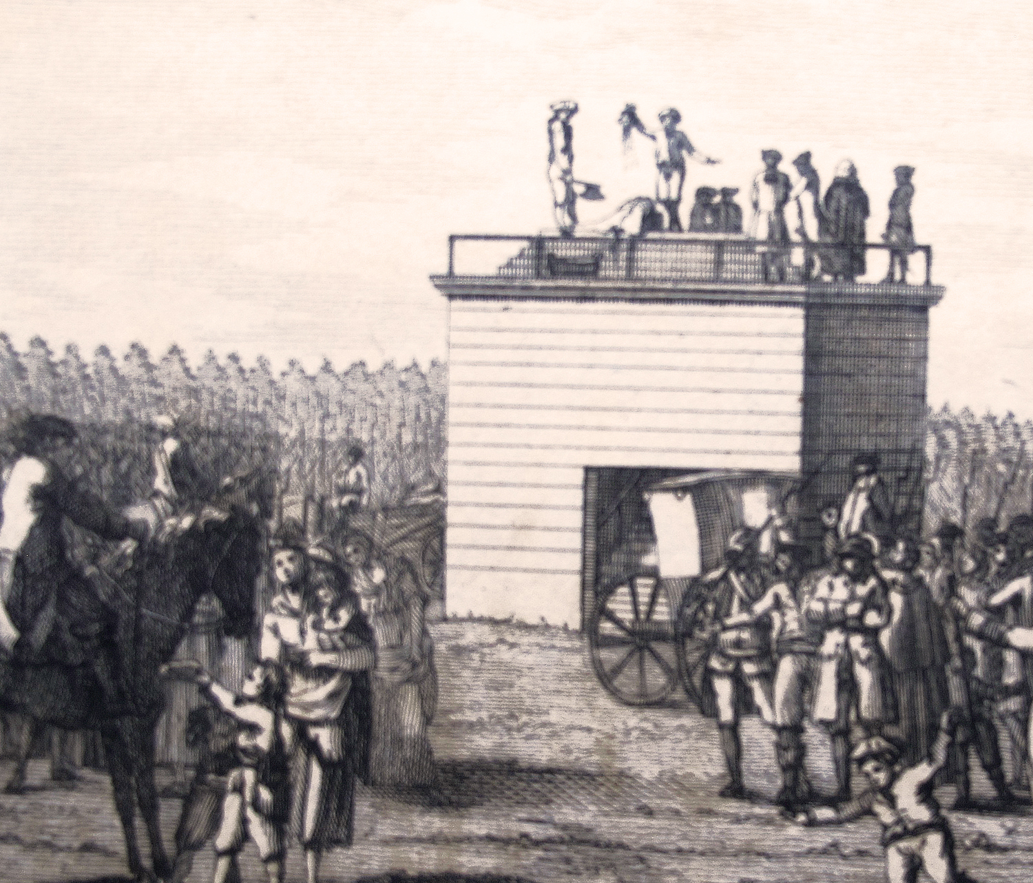 Avsnitt ur den sjuttio meter långa Bayeuxtapeten som skildrar slaget vid Hastings 1066. William Erövrarens ryttare angriper här Harold Godwinson som skyddas av sin sköldbärandc hird. Bilden är från originalet i Bayeux. Kopian finns på Børglum kloster