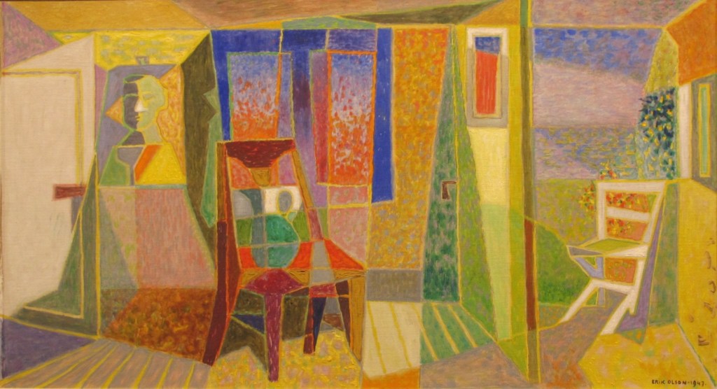 Poul Anker Bech, född i Tårs strax söder om Hjørring och senare bosatt i Børglum ett steg väster ut, är en av mina favoriter bland samtidens danska målare – en ”landskapsmålare” med överraskande perspektiv och surrealistisk lekfullhet, ofta med en underton av vemod där livet försiggår på kanten till den stora avgrunden. I museets samlingar finns en stor mängd grafik och en väsentlig del av den samlingen kommer från ”Chr Sørensens Litografiske Værksted” (1973-1983) i Hjørring där bland annat flera västsvenska konstnärer arbetade under 70-talet. Jag besökte denna kreativa och mycket kompetenta verkstad vid något tillfälle tillsammans med den svenske tecknaren och grafikern Roj Friberg (1934-2016) vilken nu också är representerad i museets samlingar. Vendsyssel Kunstmuseum är ett av få konstmuseer i Danmark som visar verk av svenska konstnärer. Bortsett från Karl Isakson som i Danmark räknas som dansk, kan jag bara påminna mig ett enda svenskt verk i övrigt på alla dessa museer i broderlandet – och det är en målning av skånekonstnären Ola Billgren (1940-2001) i Horsens konstmuseum. Vendsyssels konstmuseum har även en samling möbler av en av dessa välkända danska möbelarkitekter, Poul Kjærholm som är en traktens son och som först utbildade sig till snickare i Hjørring, senare till möbelarkitekt på Konstakademiens Designskola. Originellt nog har man valt att möblera museet med hans fåtöljer, soffor och soffbord istället för att ställa dem på piedestal.