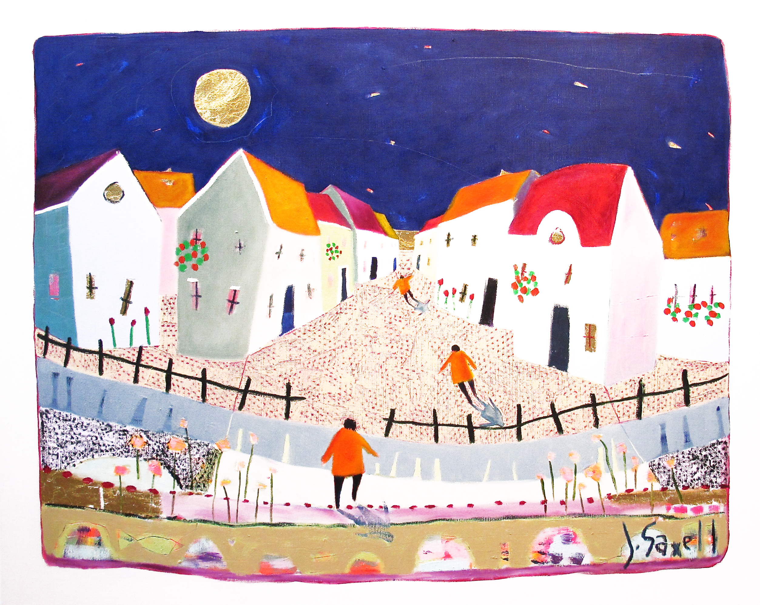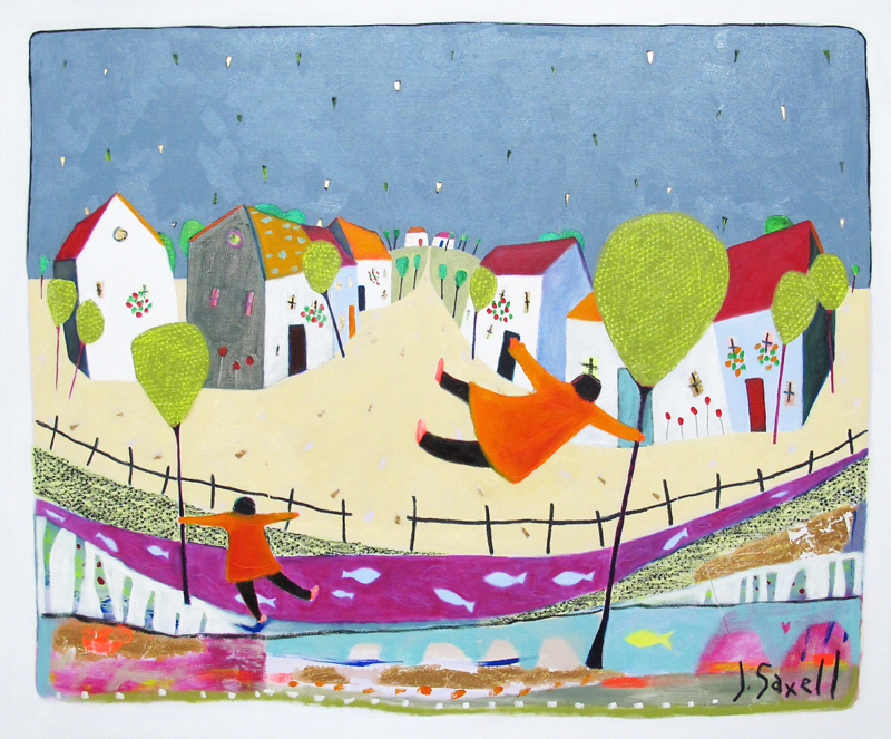 ”Människor vid hav” är Jens Søndergaards eviga och ständigt varierade tema. Längtan och den stilla ensamheten finns där, den lilla människan och det stora okända, det stormiga havet men också det solbelysta och välkomnande havet. Människorna rör sig par om par eller i små grupper och vid Sankt Hans samlas man kring det stora, brinnande bålet längst ut på klitterna. Jens Søndergaards målningar är sällan utan människor som om naturen inte finns i sig, inte utan människor. Med enkla medel, klara färgar och mjuka linjer föremedlar konstnären människornas gemensamma ensamhet.