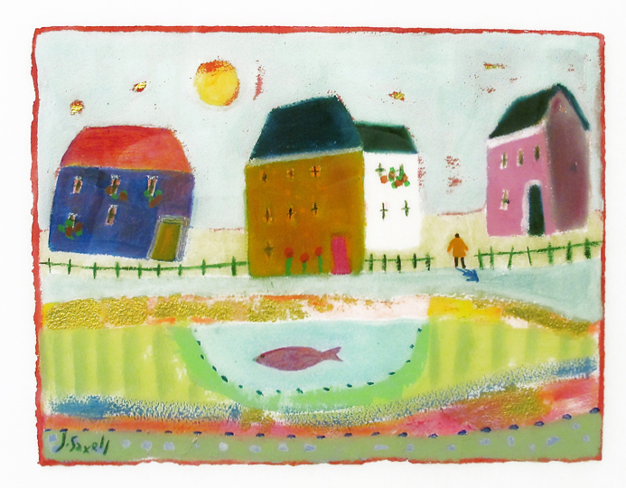 Huset var också först ett sommarviste för Jens Søndergaard (1895-1957) men så småningom även en åretruntbostad och ateljé, vintertid naturligtvis långt ifrån den idyll som man kan uppleva soliga och varma sommardagar här ute. Den är karg, trädlös och vindpinad, hela den jylländska kustlinjen utefter havet i väster men ingen byggnad, förutom Bovbjerg och Thyboröns fyrar ligger lika utsatt för havets stormar som detta konstmuseum. Men väl inkommen, en kulen och blåsig höstdag, i detta lilla konstens hus möts man av Jens Söndergaards värmande målningar och sprakande färgeruptioner.
