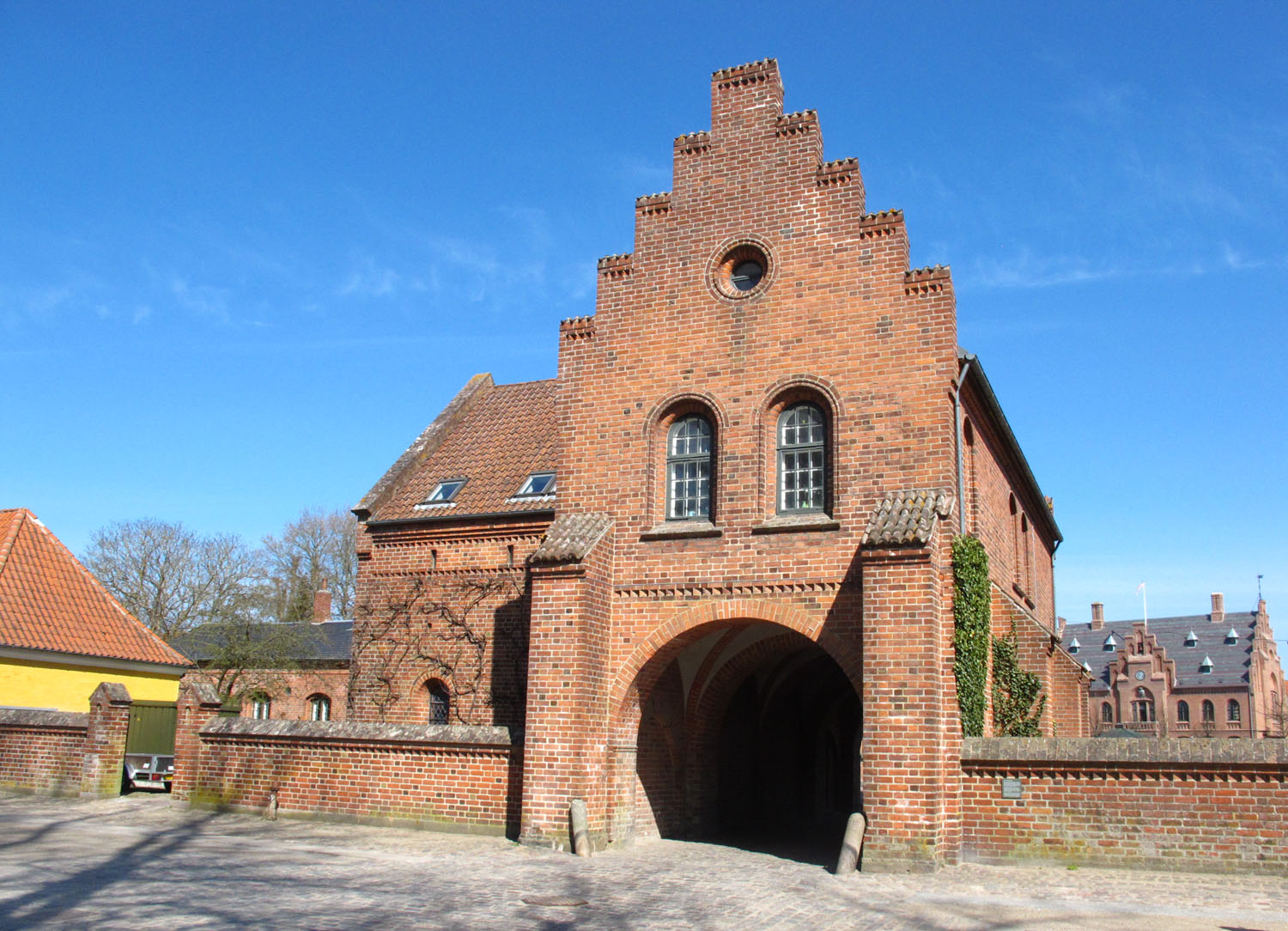 Här ”föddes” Hamlet, eller snarare Amlethus, i lägenheten ovanpå portalen till klosterområdet i den lilla själländska staden Sorø. Portalen ligger i ändan av huvudgatan genom Sorø. Bildens perspektiv är från klosterområdet mot staden